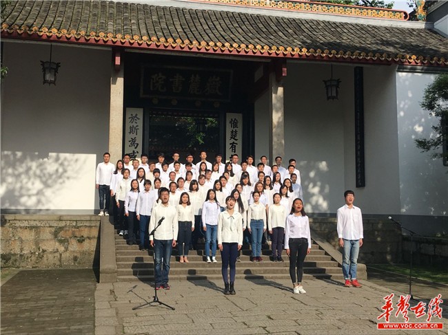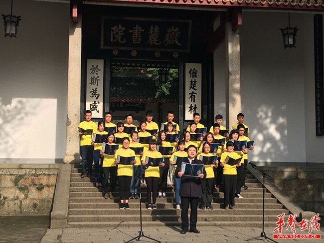 随后,来自湖南大学合唱团及优秀学生代表共计70余人,诵读及清唱了三任湖大校长胡庶华先生作 词的《湖南大学校歌》;来自湖南大学新影院师生共同诵读了毛泽东的诗作《沁园春•长沙》,壮丽诗篇,加上气势磅礴的朗读,将奋发向上的长沙精神表现得淋漓尽致。