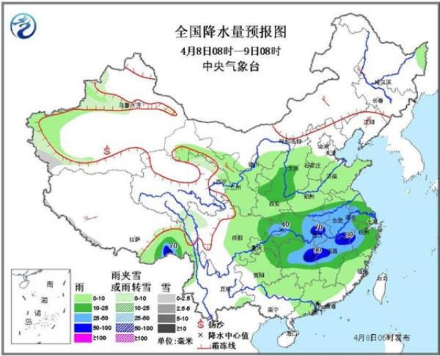 不过,在沉寂了一天后,南方降雨迅猛反扑,来势汹汹。中央气象台预计,4月8日08时至4月9日08时,四川东部、重庆北部、湖北东部、湖南东北部、安徽南部、江西北部、浙江西部、福建北部等地的部分地区将有短时强降水,小时雨强20-40毫米,局地40-60毫米;湖北东南部、湖南东北部、安徽南部、江西北部、浙江西部、福建西北部等地局地将伴有8-10级雷暴大风或冰雹天气。