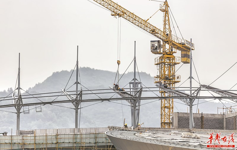 5月30日,湘西经开区湘西土家族苗族自治州文化体育会展中心项目工地,工人在进行焊接作业。今年,该区加速推进项目建设,促进地方经济发展。目前,全区42个重点项目建设如火如荼。刘振军 张术杰 摄影报道