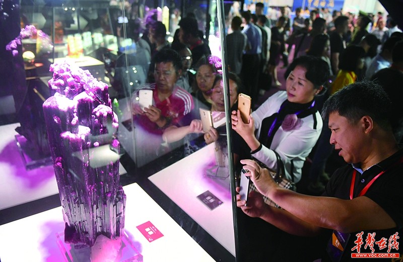 5月18日,郴州国际会展中心,世界最大的红碧玺吸引许多观众观赏。当天,第五届中国(湖南)国际矿物宝石博览会在湖南郴州开幕,来自50多个国家100多个世界知名展商的大批“绝世珍品”亮相。记者 郭立亮 摄