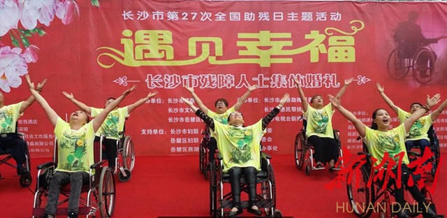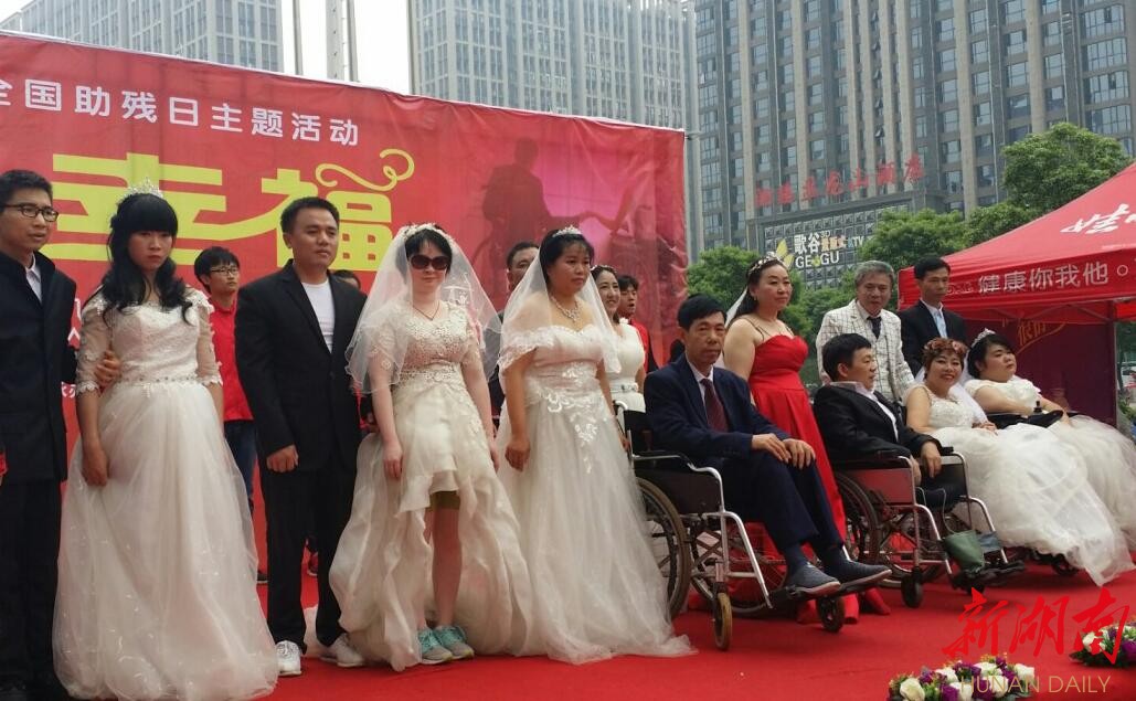 华声在线5月15日讯(记者 谢璐 通讯员 何杏)今天,在第27个全国助残日即将到来之际,由长沙市残疾人联合会、长沙市文明办、长沙市岳麓区残疾人联合会主办的“遇见幸福•长沙市残障人士集体婚礼”举行,12对残疾新人在数百名亲属和爱心人士的关爱和见证下,正式结为伉俪。