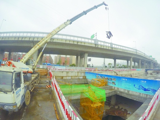 5月8日,长沙地铁5号线三一大道站工地,施工人员在进行吊装作业。当天,长沙地铁5号线三一大道站完成混凝土浇筑,成为5号线首个完成主体结构封顶的车站。长沙地铁5号线一期工程起于蟠龙路站,止于时代阳光大道站,全长约22.50公里,设站18座。计划2020年试运营。湖南日报记者 徐行 摄