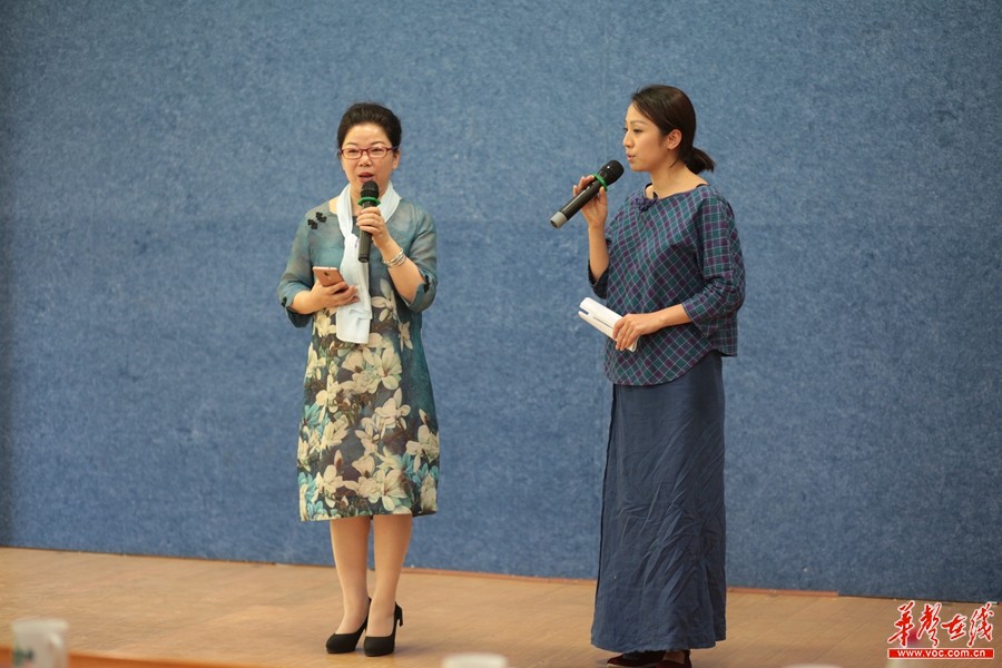 图为曹琴老师与她的朋友现场表演湘方言吟诵。