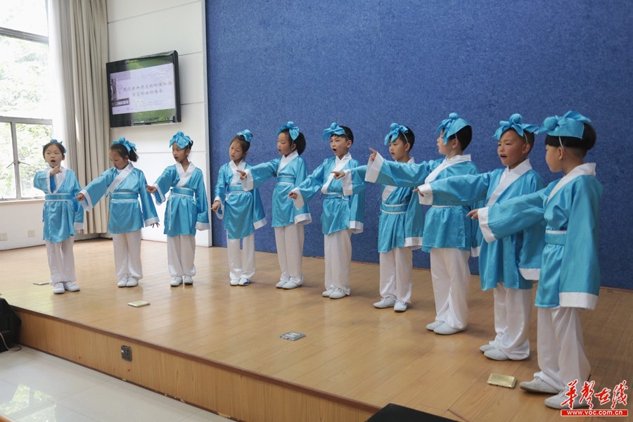 图为天心区红卫小学的小朋友吟诵《天心阁眺望》。