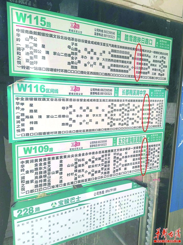 华声在线6月8日讯 “同一个公交站,怎么会有4个名字?”家住长沙梅溪湖的市民王先生发现,W115路、W116路和W109路在河西映日路上的站牌在同一个位置,可每一条线路却都有不同的名字;而家住黄兴北路沿线左文襄祠附近的刘先生也很疑惑,自己家附近的907路公交站点为什么冠了数百米以外的“彭家井”的名字。