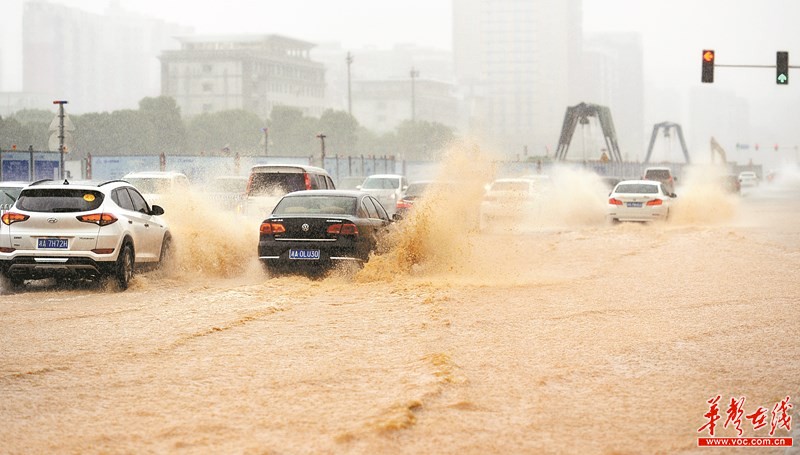 6月1日中午12时许,长沙市天心区湘府西路,车辆缓缓驶过积水区。当天上午,长沙市区迎来今年强度最大的一次降雨过程。据省气象台预计,未来一周湖南有两次强降水过程,湘中以南部分地区有大到暴雨,局地大暴雨,气温略有下降。 湖南日报记者 李健 摄