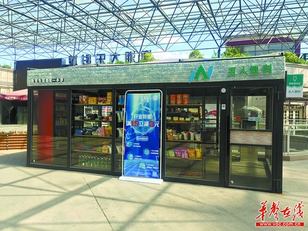 7月23日,记者来到位于长沙高新区天元七彩mall露天顶层的“五人”便利店,体验了长沙新兴的无人零售。这是一个20平方米左右的透明玻璃房子,给人的第一印象是时尚感与科技感爆棚。