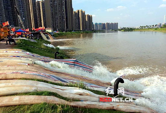 此次洪灾过程中,靳江河含浦沿线受灾严重,目前,现场有排水车和排水泵在24小时不停抽水。