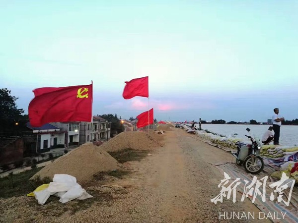 防汛一线,党旗猎猎。岳阳“电骆驼”共产党员服务队24小时值班备勤,通宵抢修排障,在大堤上架起了一条条临时照明线路。岳阳市交通运输局启动防汛应急预案,组成8个工作组和应急小分队,对灾区路面全线排查,发现隐患200多处,及时设立警示标志,组织施工抢修。