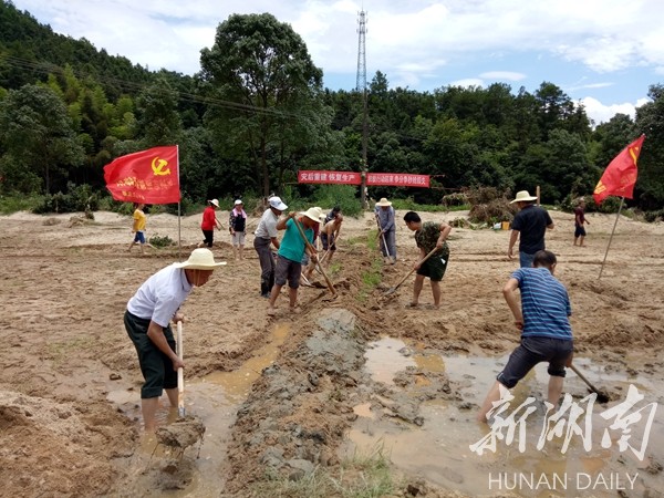 (平江县三新村党员群众迅速开展灾后重建、恢复生产。喻少军 摄)