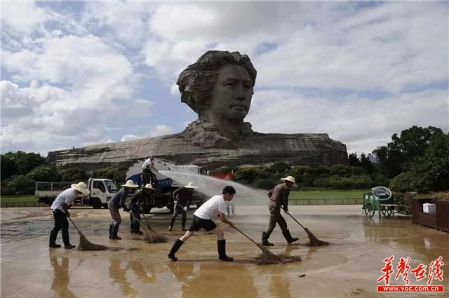 7月4日上午,橘子洲景区工作人员正在清理淤泥。