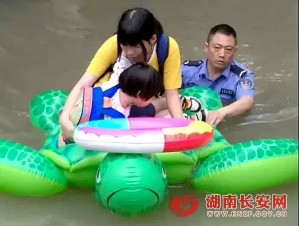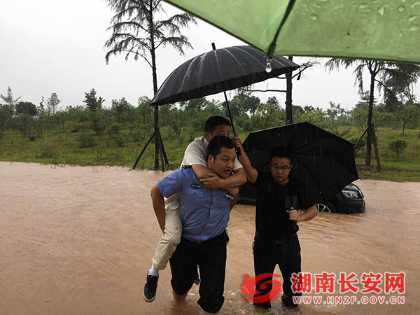 长沙县公安局榔梨派出所一楼全部被淹,民警们用小板凳搭起移动接警台,划着皮艇处警救援。长沙县副县长、公安局长彭迟平夙夜辗转春华、黄兴等地,指挥警力全面开展排隐患、保畅通、抗洪灾、救群众等工作。