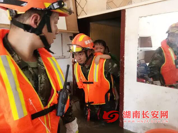 长沙消防官兵救援群众。