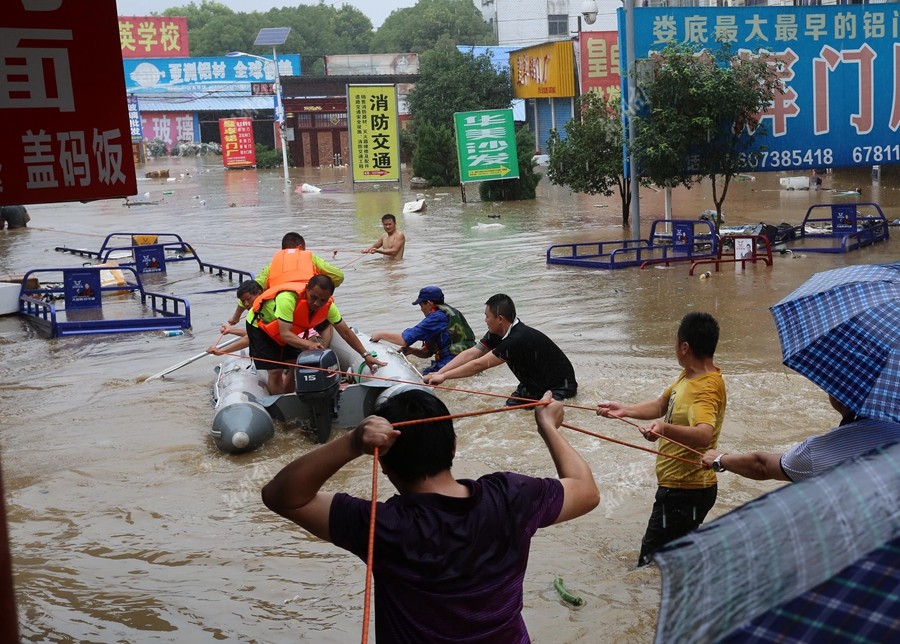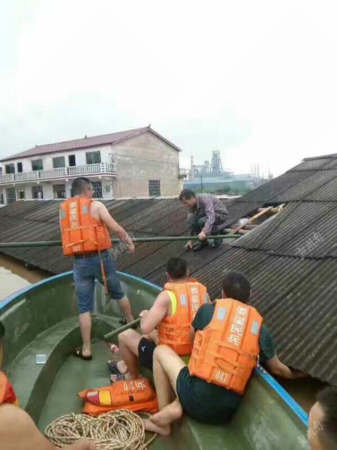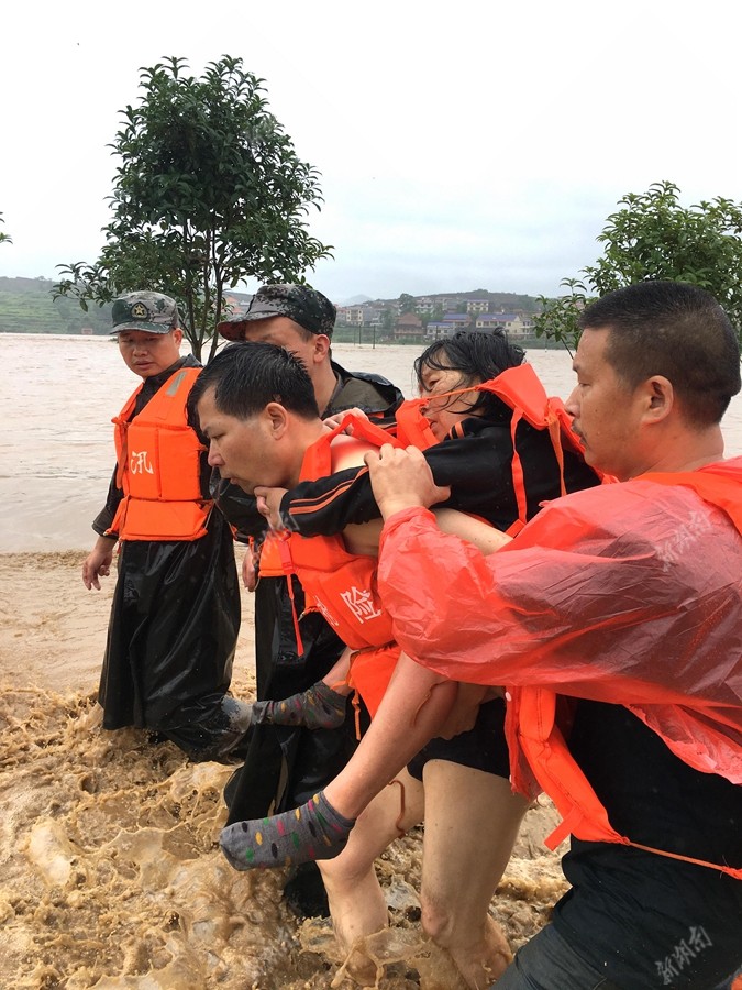 7月1日,湖南省娄底市娄星区民兵应急分队在救援转移被困群众 。