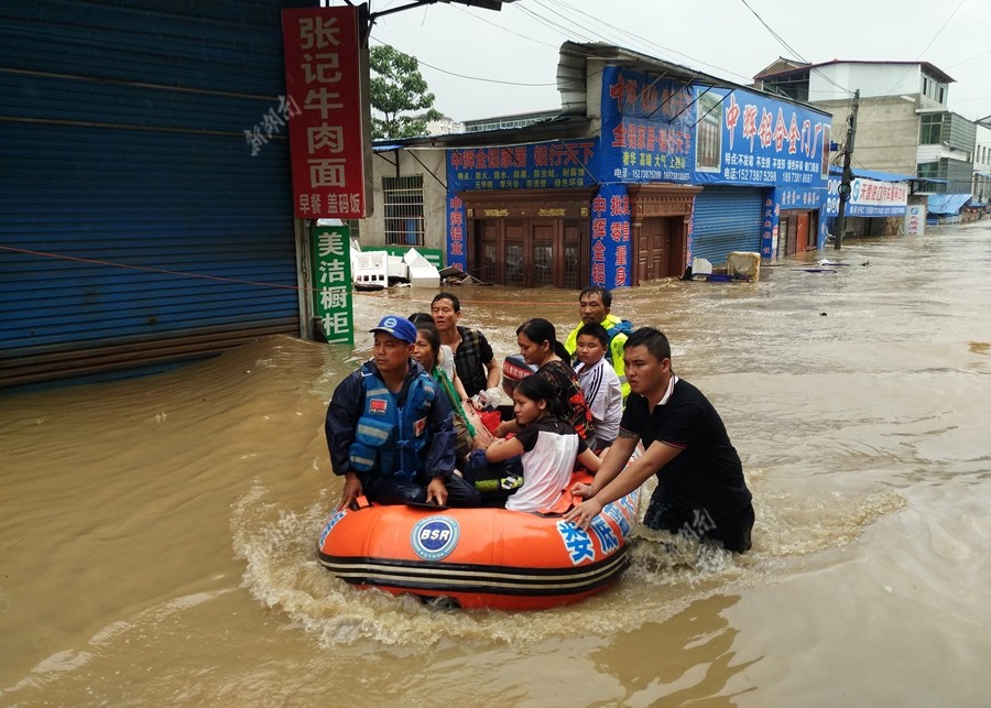 7月1日,湖南省涟源市七星街镇党委书记阳克之将被困群众茹草村廖永石一家救出。