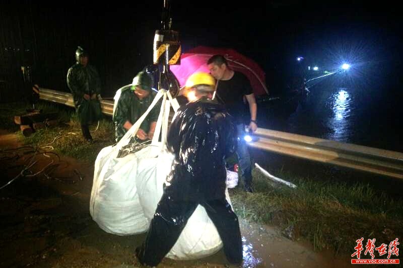 “请将任务最艰巨的堤段交给华银。”付锡文代表华银应急救援小分队主动向湘潭市防汛抗旱指挥部及雨湖区委、区政府请缨。队员们在现场水利专家的指导下,在连续几套方案都告失败的紧急情况下,开始采取用编织袋装砂卵石的办法封堵管涌。