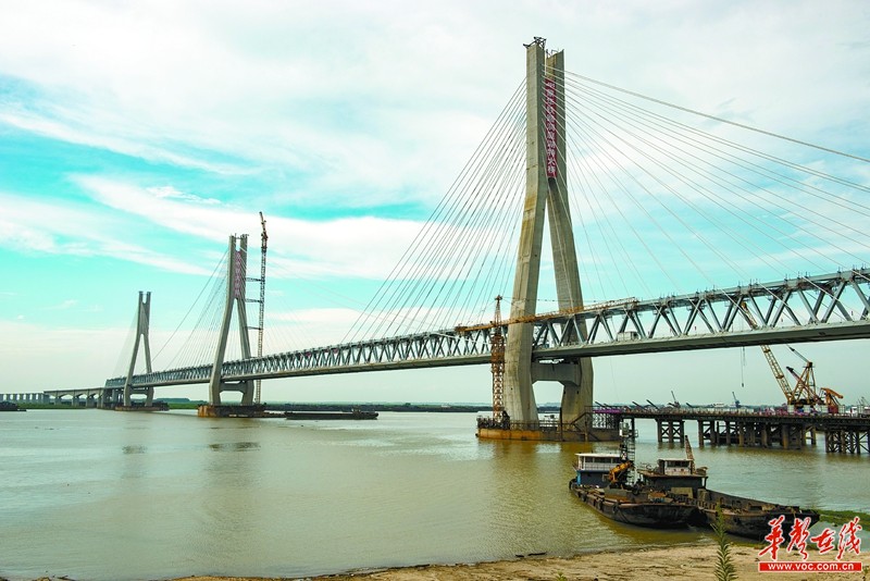 随着最后一枚冲钉敲入,蒙西至华中铁路控制性工程洞庭湖大桥主桥主体16日完工。这项工程也创下世界上首座重载铁路三塔斜拉桥等多项新纪录。