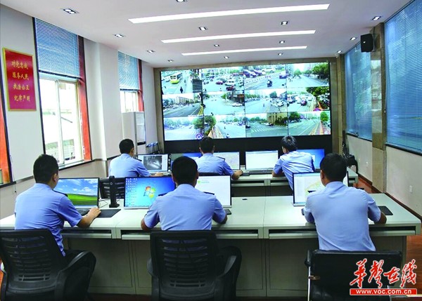 目前,长沙市有5万余个视频监控探头,监控中心可以实施24小时视频巡查。图为高桥派出所的监控中心。 记者 刘璋景 摄