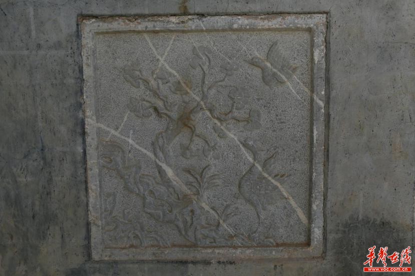 壁面上松鹤同春的石刻浮雕(摄|谢旭斌)