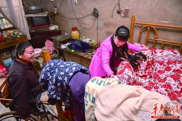 益阳市赫山区天子坟社区,唐楚才看着吴娟连帮自己铺上新被窝,脸上露出了温暖的笑容。