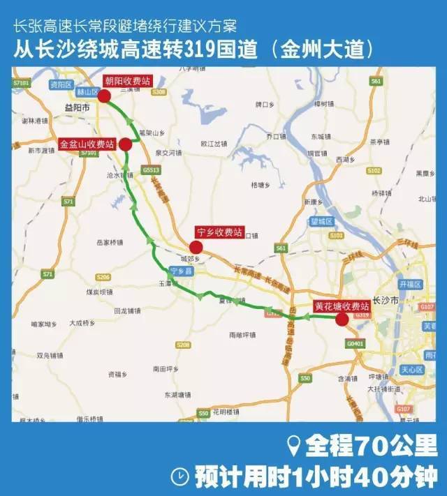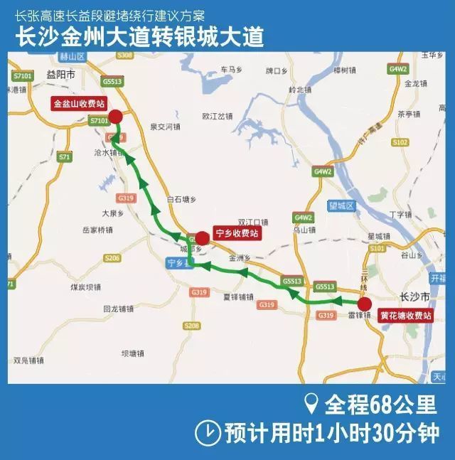 往返于长沙、益阳的车辆可选择319国道和宁乡大道出行,或选择金州大道至宁乡转益宁城际干道直抵益阳。