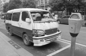 上午9点50分许,记者来到林子冲路发现,咪表停车位上停了不少报废车。在22、24号停车位前,停着一辆老式的黑色本田,旁边是一辆连轮胎都没有的桑塔纳,附近还有不少油漆脱落、车窗玻璃碎裂、车门缺失的面包车等。