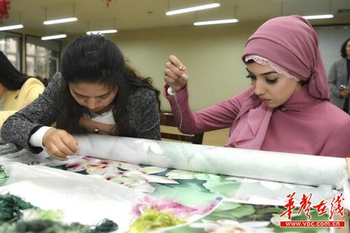 “以前只在网上看到过刺绣的图片。”18岁便来中国读书的馨玥已在中国生活了7年多,也去过很多地方,“专门采访过醴陵釉下五彩瓷、景德镇陶瓷等中国传统工艺,但湘绣最让我感到震撼”。