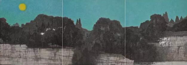 清岚晓月 120×118cm×3 纸本设色 2017年