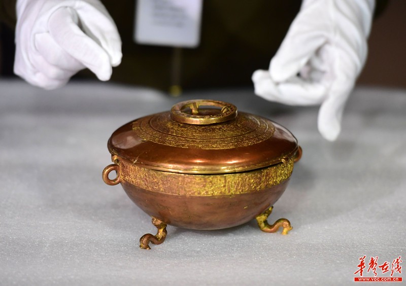 华声在线12月26日讯(记者 王一辰 通讯员 李叶)今天上午,在湖南省博物馆一楼展厅内,几位文物工作人员戴着白色手套,围在一张方桌前,其中一人小心翼翼地将一件件文物捧出囊匣。杜虎兵符、金盏、“鄂君启”错金铜车节等春秋战国时期的珍贵文物一一露出真容。至此,备受关注的《东方既白——春秋战国文物大联展》正式开箱布展。