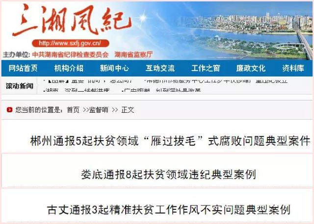 发生在扶贫领域的腐败和作风问题,尤其让人痛恨。湖南自2016年启动“雁过拔毛”式腐败问题专项整治,揪出一大批“蝇贪”。今年以来,三湘风纪网关于扶贫领域的违纪案更是通报不断。