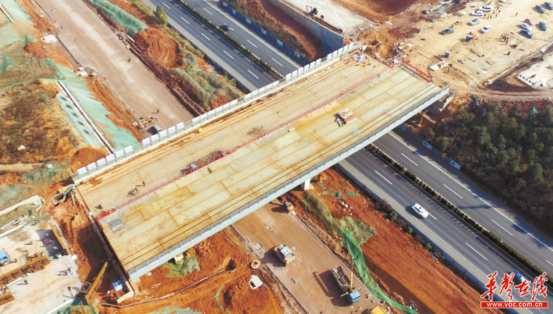 12月19日上午,中建五局施工人员将长潭西高速公路跨线桥南幅钢箱梁顶推到位。该桥是湘江新区首座大跨度曲线钢箱梁桥,全长100米,分南北两幅,总宽36米,重达2600吨。湖南日报记者 田超 通讯员 方茜茜 摄影报道