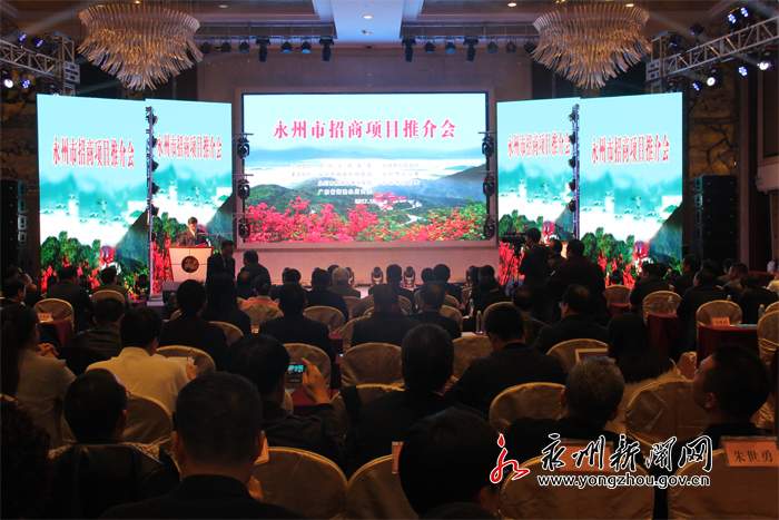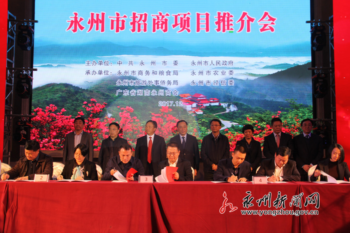 永州新闻网讯(记者 唐波涛)12月16日下午,永州市招商推介会在广东省东莞市举行,现场共签约农产品、工业及旅游开发等项目30余个,总投资达158.85亿元。市委副书记、代理市长赵应云在会上致辞,市委常委、常务副市长张贺文主持推介会,湖南省驻深圳办事处党组书记、主任何文君,市领导李旦梅、吕斌等出席活动。