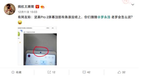 坚果Pro 2发布的这一个多月以来,朋友圈、微博等社交平台持续被“最美全面屏”刷屏,和目前市面上的大多数全面屏产品不同,坚果Pro 2几乎是将机身正面能隐藏的元素统统进行了隐藏,比如隐藏式的传感器、几乎隐藏的听筒,这样极具辨识度的设计也给坚果Pro 2圈了不少粉。不过也正是因为这几乎隐藏的听筒设计,在贴吧闹了个乌龙,有网友表示自己拿到的坚果Pro 2有条漆没喷上,但是倘若你仔细看网友配图,发现网友所说的位置正是坚果Pro 2的听筒位置,不知道这位网友在知道真相后会不会有种“最后知道真相的我眼泪掉下来”的感觉。