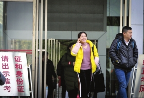 “行测印象比较深的就是图形推理,其中有一道题,好费时间的,还是没有找出规律,最后我只能蒙了。数量分析题倒是蛮简单,比往年都简单一些。”孙蕾介绍,今天行测题目都没有做完,时间不够用。“我做行测沿用以前的做题顺序,言语理解、逻辑、判断、数量关系、资料分析,最后再做常识。因为言语理解、逻辑推理用的时间久,所以导致资料分析没做完。孙蕾说,“听好多同学说也是没做完,蒙了好多题。”