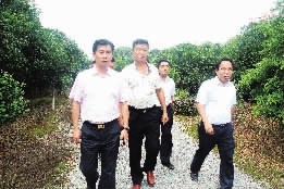 6月28日,祁阳县委书记周新辉(右二)深入文明铺镇新塘角村指导水利设施建设。