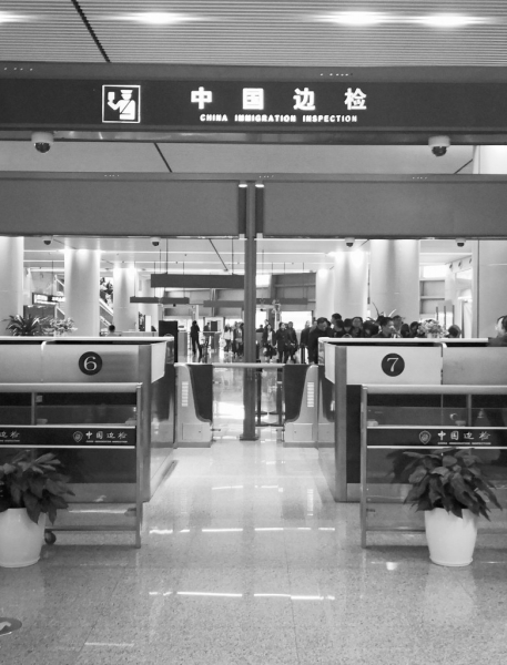 进入安检区后,安检员示意将随身携带的物品一一放置在盒子内通过安检机。每位乘客需高举双手,站在一个半开门的安检门,侧身斜站在门内,经扫描仪安检后再通过。与记者同团的男性游客携带的指甲钳被安检员以危险物品没收。