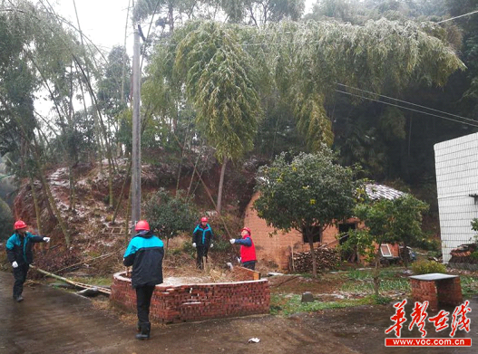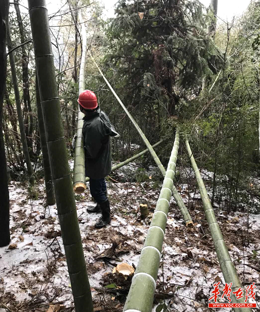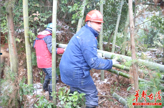 1月27日,10千伏仙伍线由于树竹覆冰后倒在线路上引起供电故障,国网长沙县供电公司榔梨供电所“电雷锋”共产党员服务队队员斩荆棘、砍树竹、钩枝丫,对凡是有可能因覆冰而导致树竹碰线的都全部进行砍剪,经过3个多小时奋战,于11:40分恢复供电。