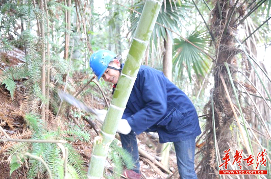 1月27日上午,国网长沙县供电公司江背供电所全所员工正全力砍青保电。