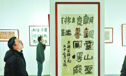 1月22日,观众在欣赏书法作品。21日至24日,2018迎春公益书法展在湖南图书馆举行,展出陈泽忠、陈兆亮等12位艺术家精心创作的110件书法作品。参展的所有作品将进行义卖,所得善款用于“墨润潇湘”乡村中小学书法校园公益建设工程,促进乡村中小学书法教师队伍建设,推进传统文化的传承与发展。湖南日报记者 徐行 摄