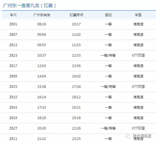 2018年最新广九直通车时刻表