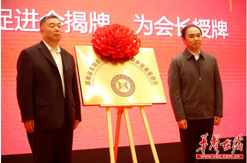 中国非遗联盟秘书长王義林与湖南省文化厅党组成员、副厅长张帆为湖南省非遗促进会揭牌