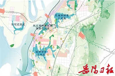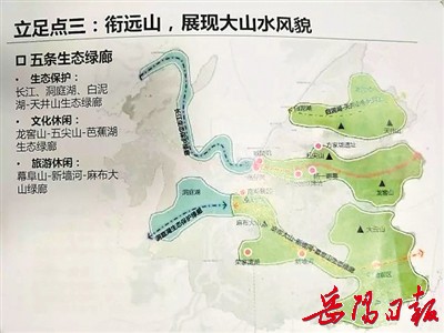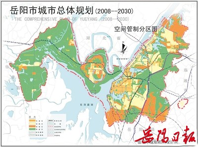 根据《岳阳市城市总体规划(2008—2030)》修改项目汇报材料,大岳阳将如何做到“吞江、拥湖、衔远山”,塑造大江大湖城镇发展轴,详见岳阳市城市总体规划图(见本版)。