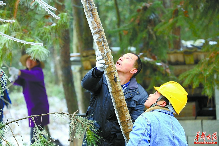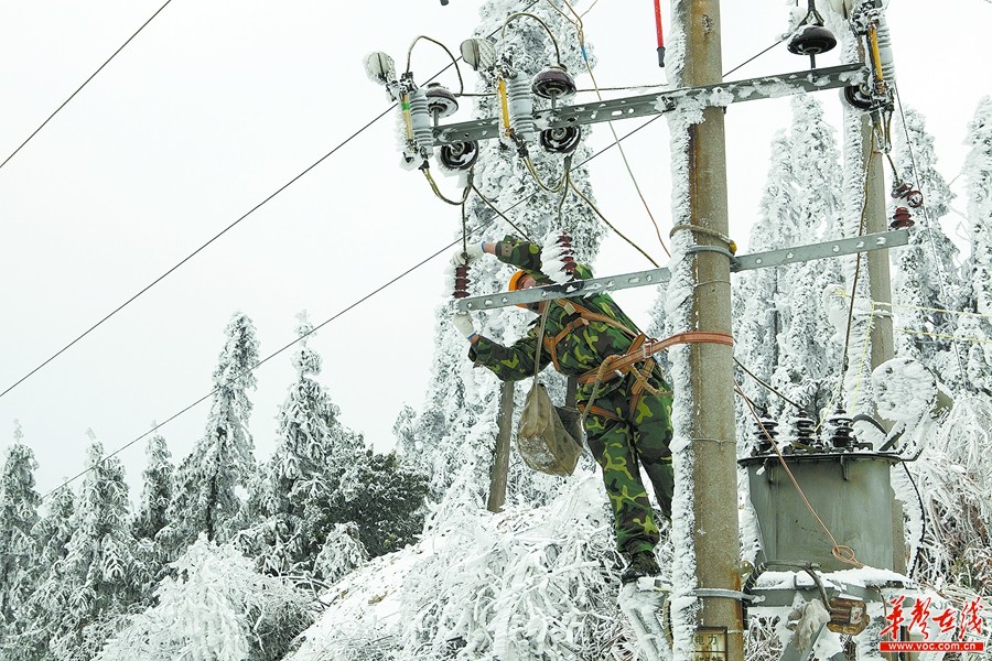 1月4日,国网古丈县供电公司组织员工赴灾情较为严重的岩林岩锋线进行人工除冰。 石可君 摄