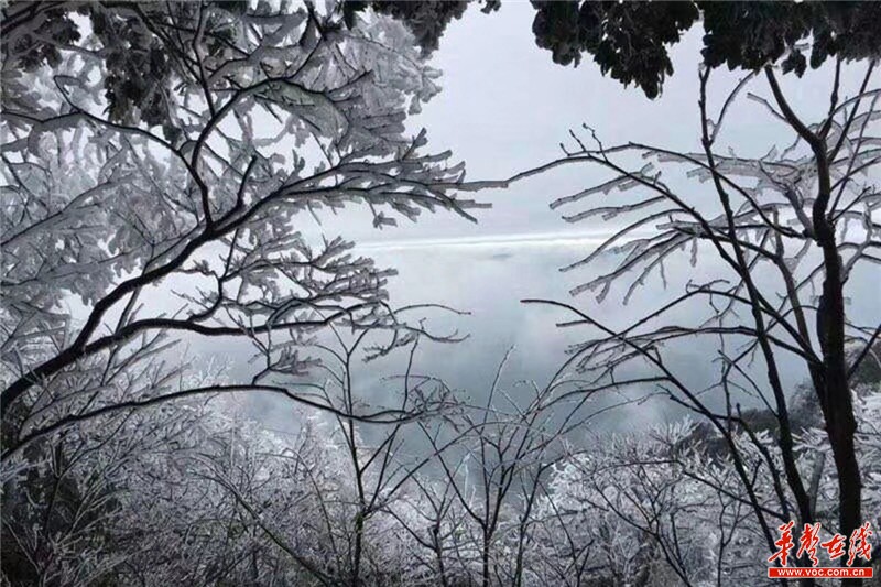 长沙岳麓山山顶形成冰挂景观。网友 雨虹 摄