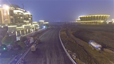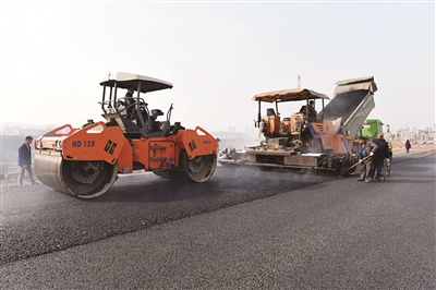 新城大道项目施工人员夜以继日,修平了6座大山、填平了4个低洼处,克服了征地拆迁过程中的各种难题,晴雨天错开施工作业,提前一个月建成了宽64米的三环线骨干大道。