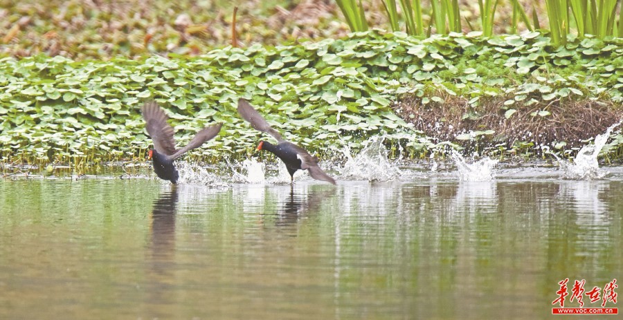 3月29日,长沙西湖文化园湖心岛水域,各种鸟类在水面飞翔,或觅食或嬉戏,一派生机勃勃的和谐景象。阳春三月,该公园水清、岸绿、景美的立体生态环境成了鸟儿乐园,高峰时在此栖息觅食的大小鸟类多达数千只。