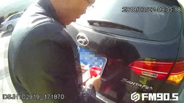 驾驶员看到民警,迅速下车将红色物体拿走。殊不知,这一切早已被警车里的车载北斗视频监控系统记录了下来。