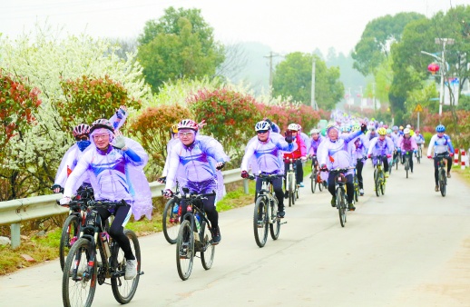 3月17日,“2018华容芥菜大会骑行巡游赛”在华容县三封寺镇七女峰景区举行,来自湖南、湖北两省的220余名骑行爱好者参加。