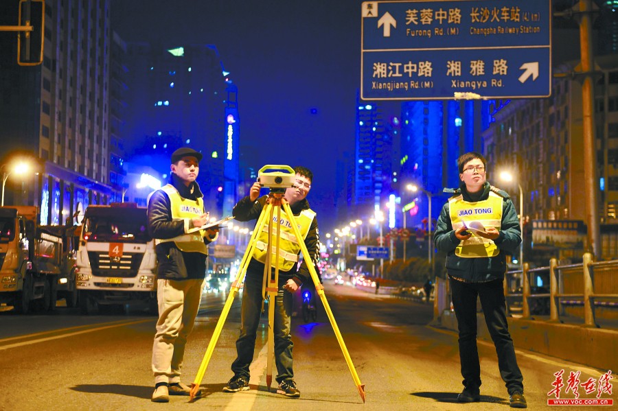 3月11日凌晨,长沙市橘子洲大桥,工作人员在对大桥进行检测。当天凌晨0:00至6:00,长沙市工务局对橘子洲大桥进行静动载试验检测。该大桥是长沙市五一大道与河西之间的主要通道,日通行量达10万辆以上,严重超出设计标准,桥面沥青混凝土多处出现裂缝和车辙。最近,长沙市相关部门抓紧研究橘子洲大桥提质改造方案。