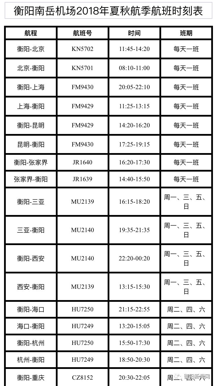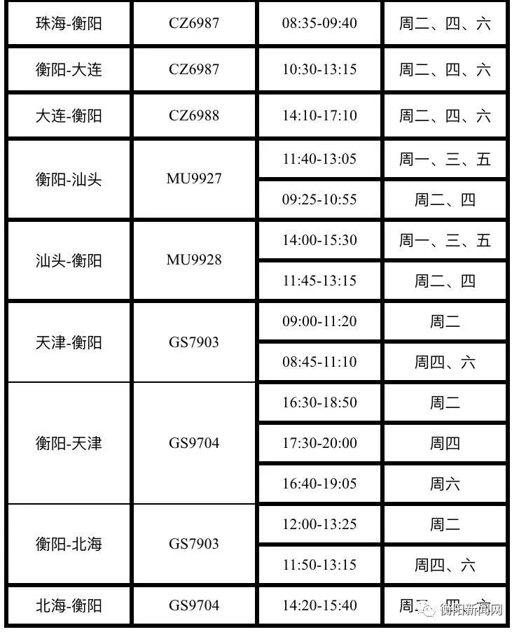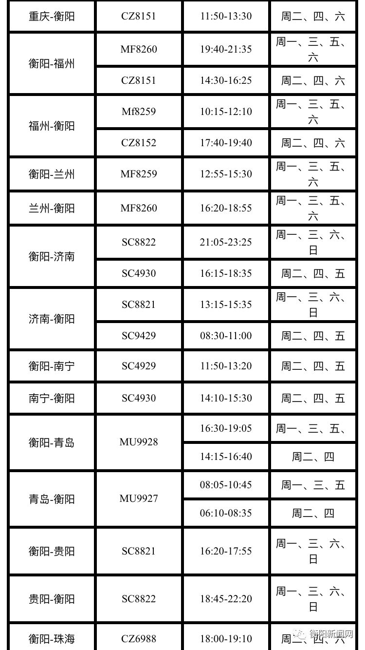 衡阳南岳机场也将于3月25日